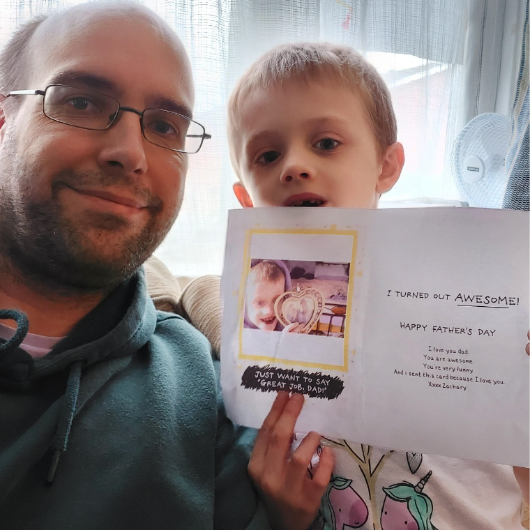 This is my lovely husband, David, with our fantastic 7-year-old son, Zachary – who decided it was better to make a picture for Dad on Father’s Day, rather than spend any money! We’ve trained him well.